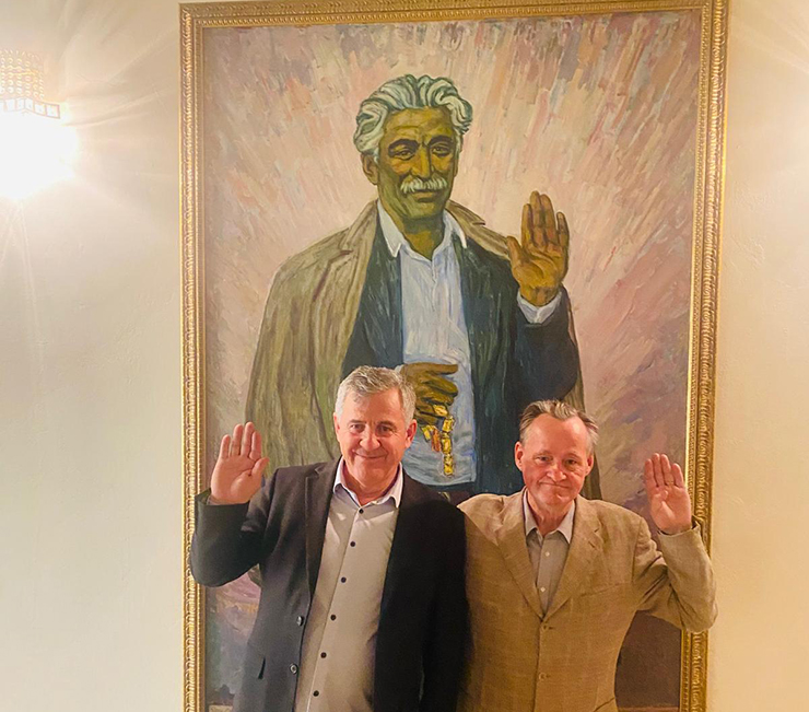 Azerbaycan edebiyatının adeta sembolü haline gelen Yazarlar Birliği Başkanı Anar Rıza ile birlikte olmaktan mutluluk duyduk. 80’li yaşların ortasında, yaşını onurla taşıyan, kim olduğunu ve ne istediğini bilen bir adam. Bizi sıcak bir şekilde karşıladı ve H.C. Andersen gibi yazarların ne yaptığını anlattı. Andersen ve Søren Kierkegaard onun için önemli. Hatta Svendborg’lu şair Johannes Jørgensen’den bile söz etti. Etkileyici bir bilgi ve ufuk açıcı.